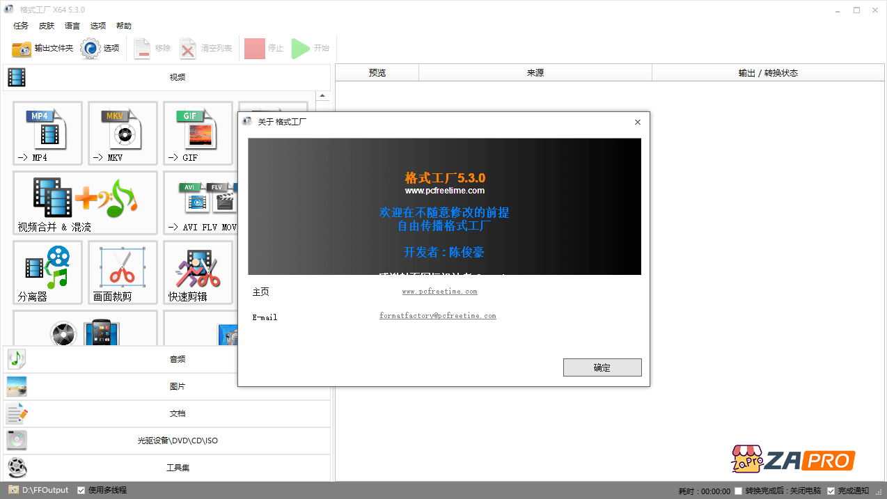 格式工厂(Format Factory)是一款由国人陈俊豪开发的,免费的多功能的多媒体格式万能转换软件。可以实现大多数视频、音频以及图像不同格式之间的相互转换,而且还支持增添数字水印等功能。适用于各种多媒体文件的多功能转换器。它具有许多其他功能,使FormatFactory成为处理各种格式的多媒体文件的通用工具。