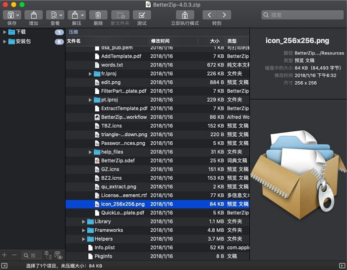 BetterZip for Mac只对你真正需要的文件进行解压:如果你只需要从一个更大的存档中几个文件或文件夹,您不必提取整个事情。只需将任何Finder窗口或桌面的文件拖动到BetterZip for Mac窗口中即可。无需解压的开放档案:BetterZip for Mac不仅可以开放档案,不先提取它们,你也可以使用类似于iTunes的界面搜索一个文件。 BetterZip for Mac可以打开最常见的格式: ZIP , SIT , TAR , XAR ,GZIP ,BZIP2 , RAR , 7 -ZIP , CPIO , ARJ , LZH / WAR , JAR , LHA , CAB , ISO , CHM , RPM和提取档案, DEB ,NSIS , BIN , HQX 。