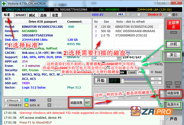 监视和预测故障的技术(自我监视,分析和报告技术,简称SMART)已作为现代HDD和SSD驱动器的一部分提供。该程序除了通过Windows API工作外,还具有PIO模式:直接通过端口访问经过测试的IDE / SATA驱动器,绕过Windows和BIOS。同时,Victoria自己完全实现了与设备一起使用的物理协议。