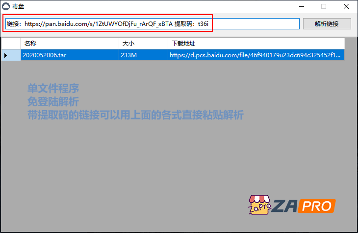 毒盘 - 百度网盘链接免登陆不限速下载工具 2020年7月9日 14:08 • Windows • 且用且珍惜,能下多少下多少。不要指望这种软件可以永久使用,API接口一旦被撸费了,下载速度依旧会是几十K。所以某天永不了,也不要奇怪,更不要瞎逼逼!复制解析地址,可以使用IDM直接不限速下载(IDM 中文破解版下载地址)已更新至 1.2 版本,解决“无法连接远程服务器”问题下载地址 CTFILE 蓝奏云 广告招商虚位以待 广告招商虚位以待 百度网盘百度网盘下载工具百度网盘不限速百度网盘链接解析百度网盘高速下载 赞 (22) 1 相关推荐 亿图思维导图 Edraw MindMaster Pro 8.0.102 直装全功能专业版 2019年7月11日 万兴PDF专家 Wondershare PDFelement Pro v12.1.6 绿色便携版 (含OCR) 2026年1月16日 多媒体转换:格式工厂 Format Factory v5.3.0 绿色便携纯净版 2019年9月29日 驱动人生国际版 Driver Talent Pro v8.0.1.8 解锁专业版汉化绿色单文件 2021年4月18日 酷我音乐 v9.1.0.0 去广告VIP破解绿色版 2019年9月30日 硬盘哨兵 Hard Disk Sentinel Pro v5.70 beta5 多语言学习版 2021年6月8日 专业硬盘坏道扫描工具 Victoria 5.28 中文绿色版 2020年5月4日 视频下载工具: B站 哔哩下载姬 Downkyi v1.4.0 2021年8月5日 数据恢复软件: Wondershare Recoverit 10.0.2.7/10.0.1.5 已激活版 (Win/Mac) 2021年9月7日 免费文档翻译工具:PDFtranslator 2019年7月9日