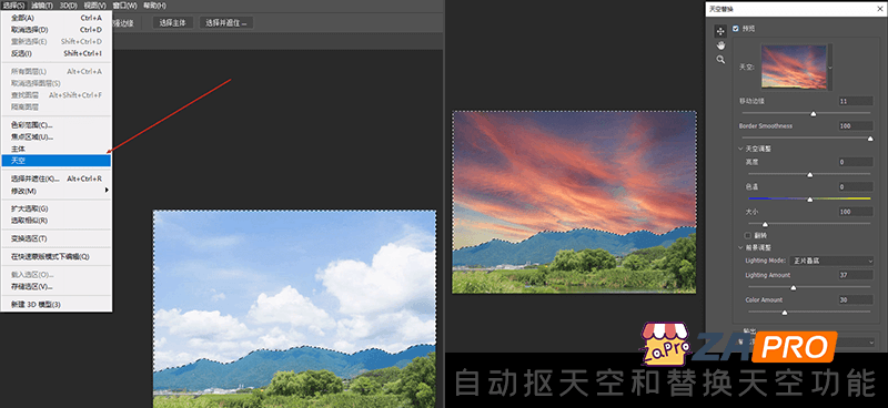 自动抠天空和替换天空功能